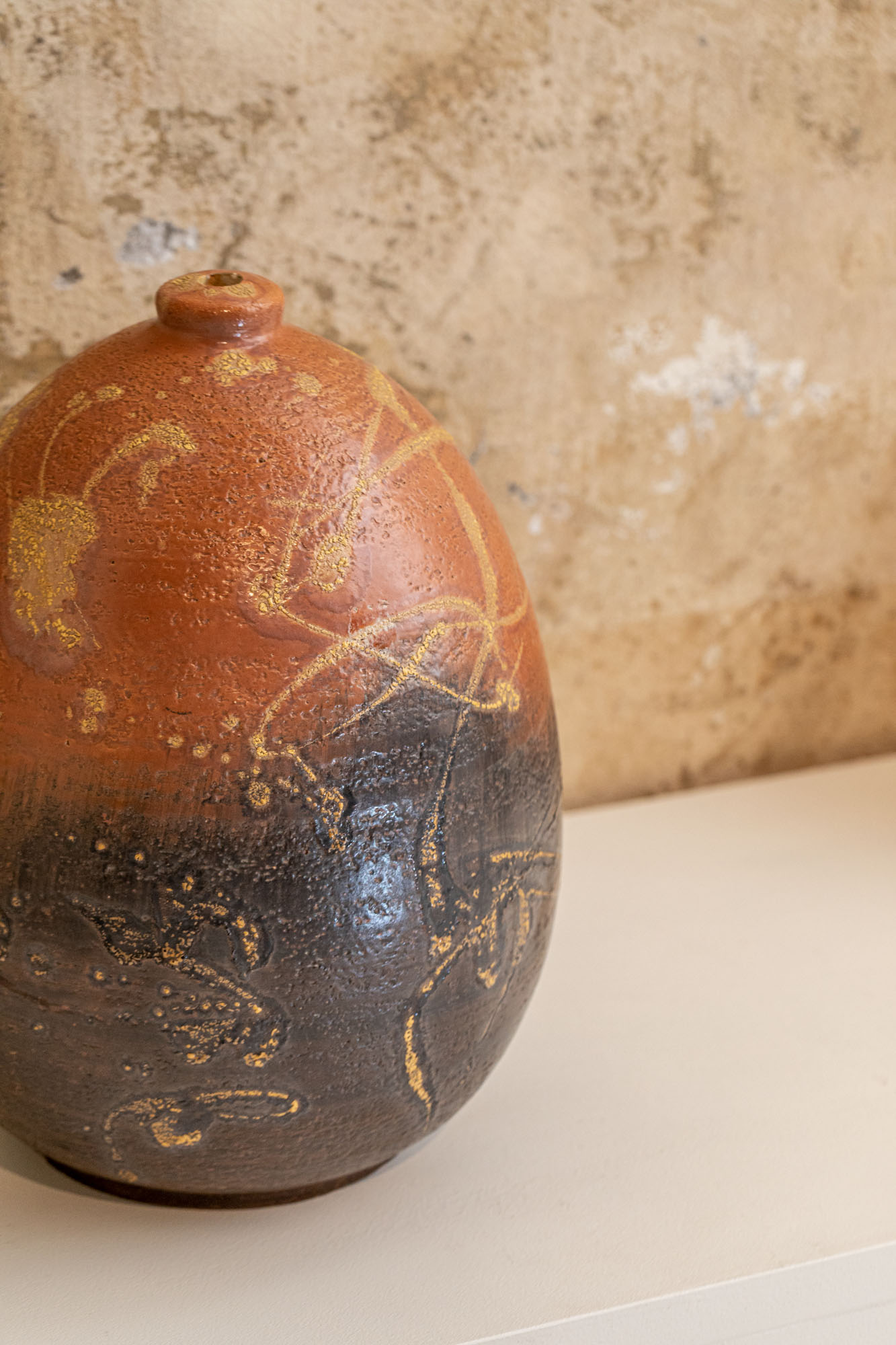 Awesome Majolica brown and orange painted vase signed Fantoni.1970-1979Height: 15.36 in. (39 cm)Diameter: 11.03 in. (28 cm)