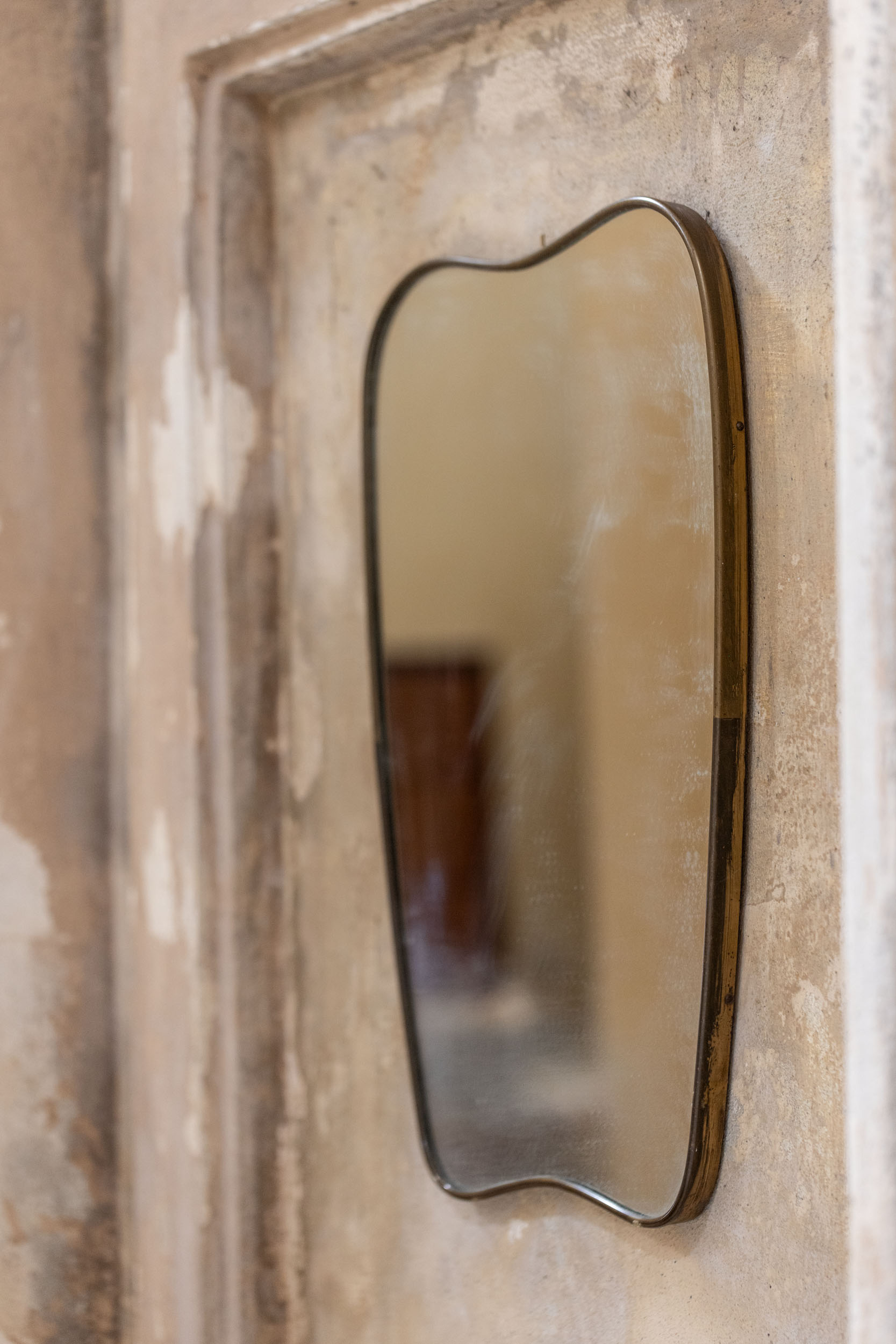 Mid-century wall mirror attributed to Gio Ponti. Elegant golden brass frame and original crystal mirror.Vintage, perfect condition. Italy, 1950s