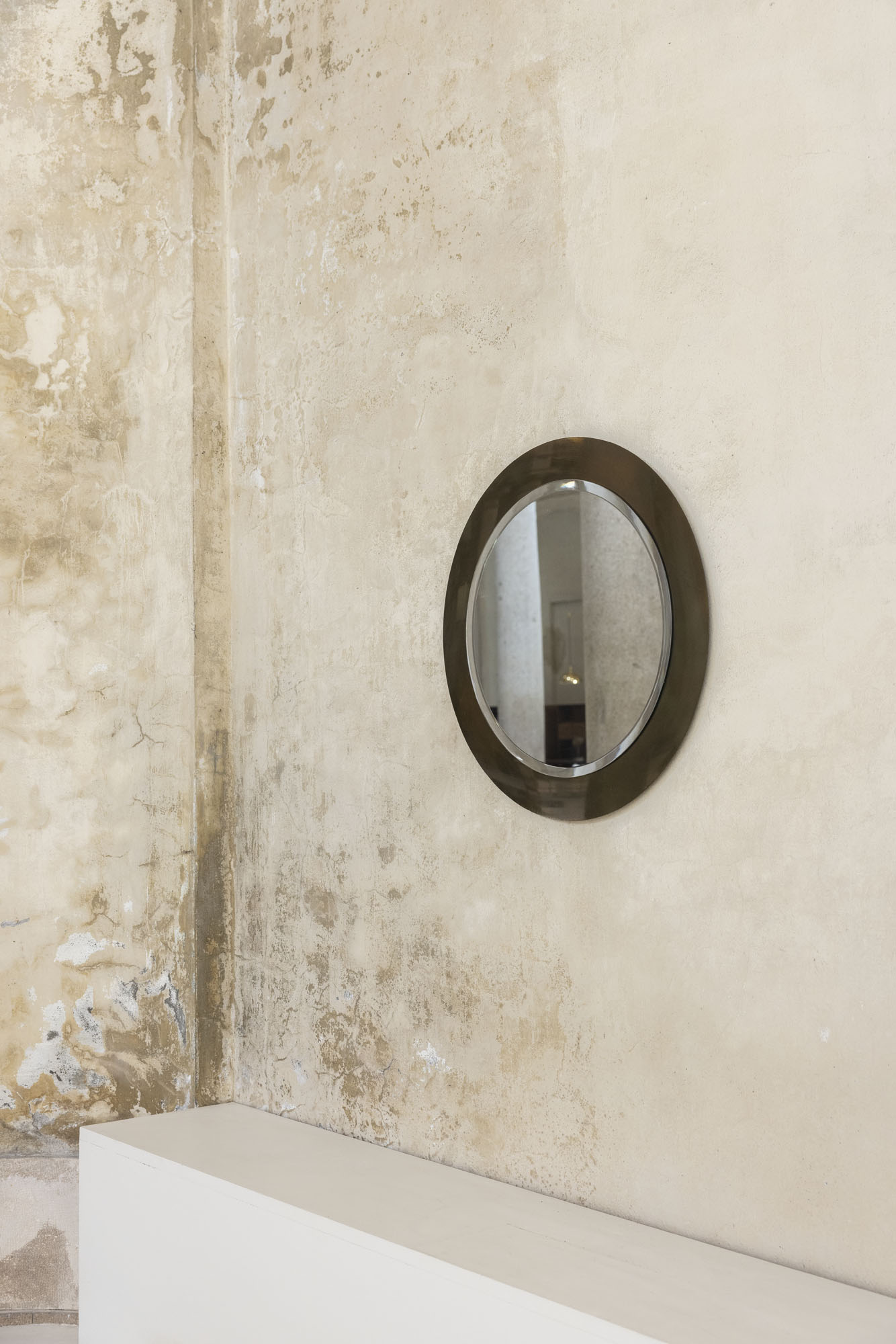 Elegant round wall mirror with its original frame and glass, crafted in Italy around 1970.