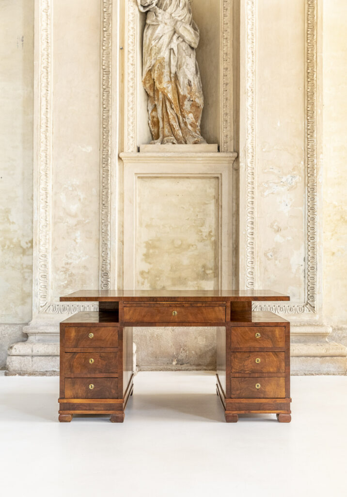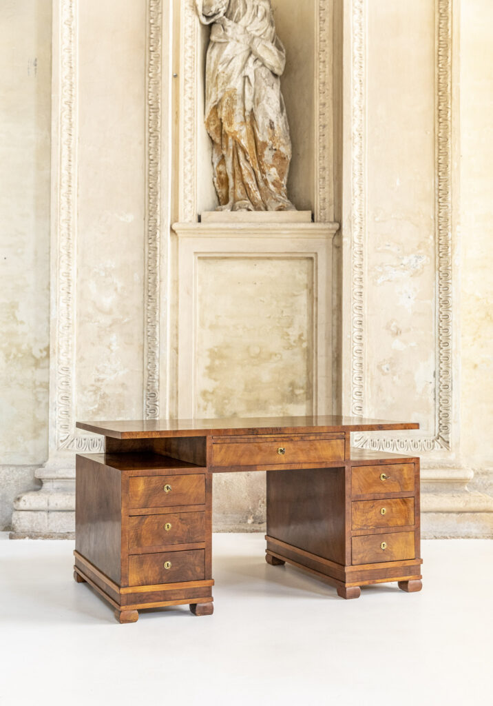 Desk entirely made of walnut wood, original drawer keys.