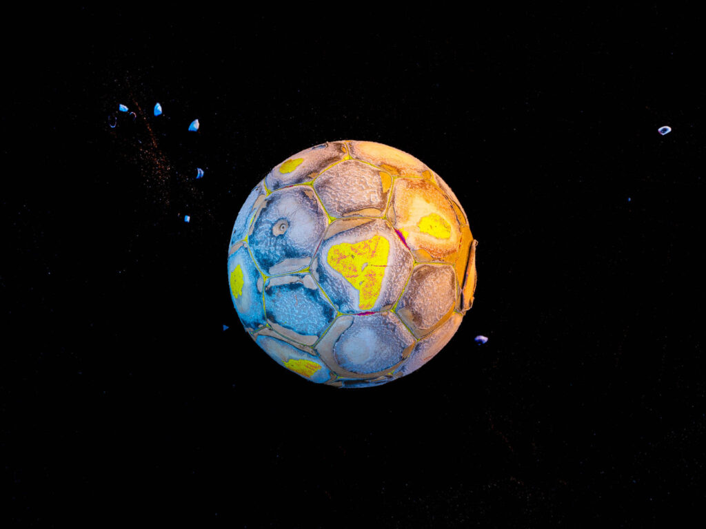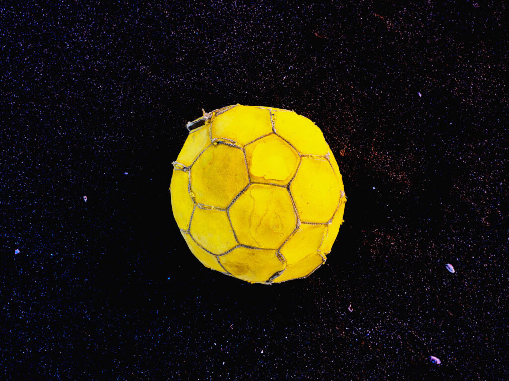 La genesi del progetto risale a un ritrovamento fortuito in riva al mare, un pallone da calcio consumato dal tempo e restituito alla terra da una mareggiata. La forma archetipica dell’icosaedro tronco, costituito da 20 esagoni e 12 pentagoni, inizia ad interessare la ricerca di Luca Piola che approfondisce corrispondenze e rimandi, da Archimede a Luca Pacioli, da Piero Della Francesca a Cyranò de Bergeràc, passando per la molecola di carbonio buckminsterfullerene.
