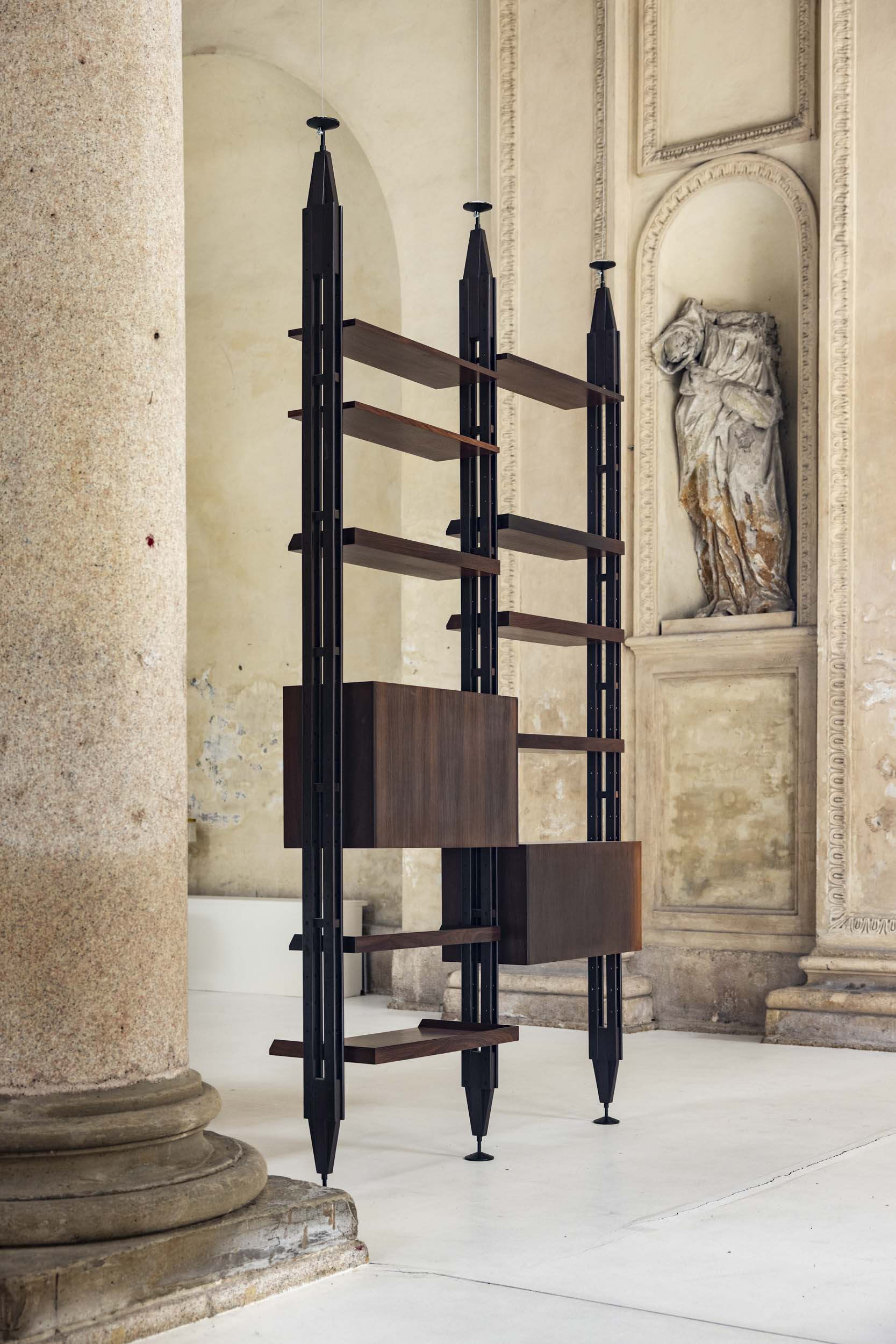 Iconica libreria LB7 disegnata da Franco Albini nel 1955 e prodotta da Poggi Pavia.Può essere utilizzata anche come divisore spaziale e questo pezzo si presenta in due unità, con mensole e armadietto posizionabili a piacere.