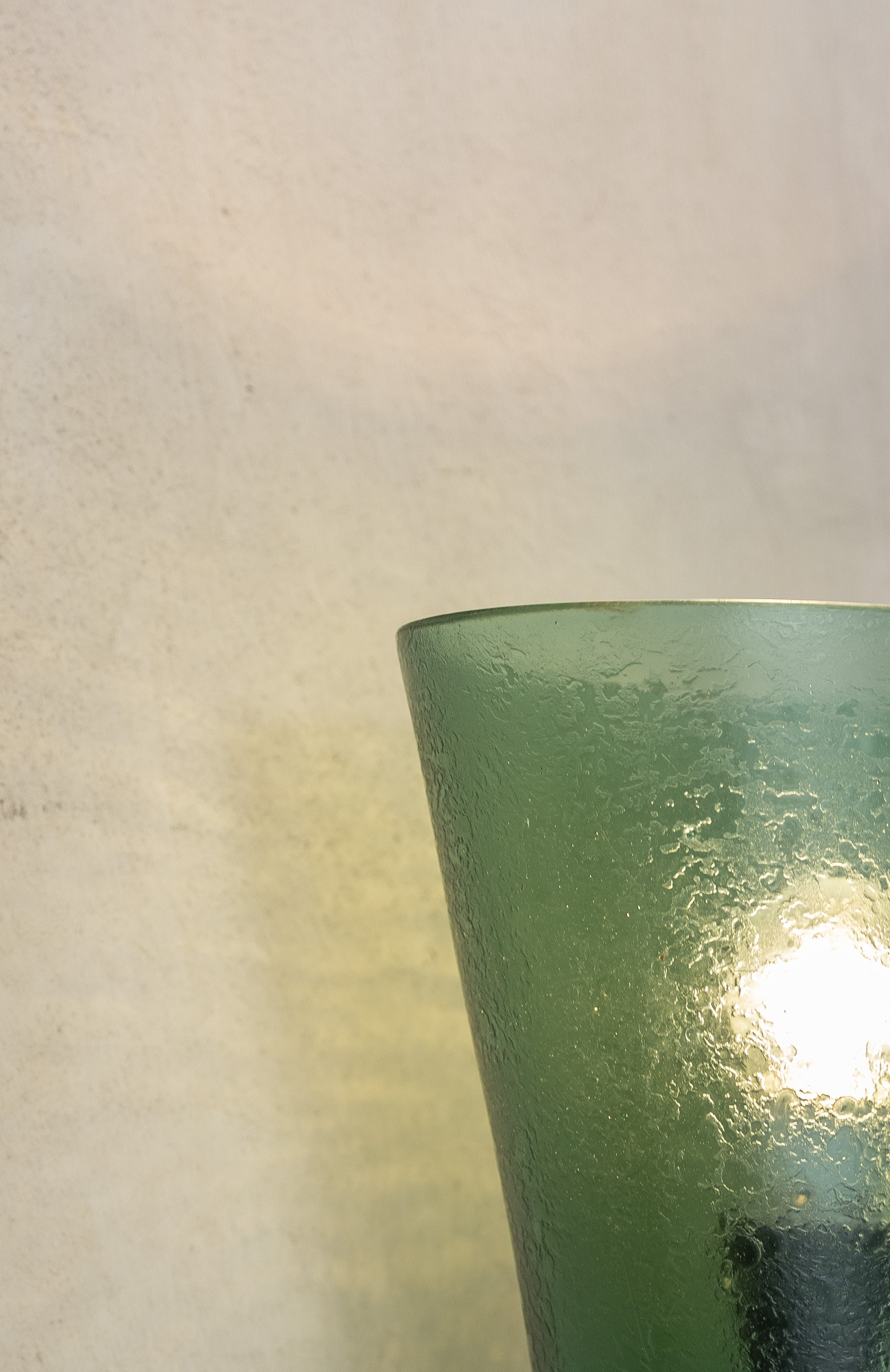 Lampada da parete con paralume realizzato in vetro di Murano Pulegoso color verde smeraldo.