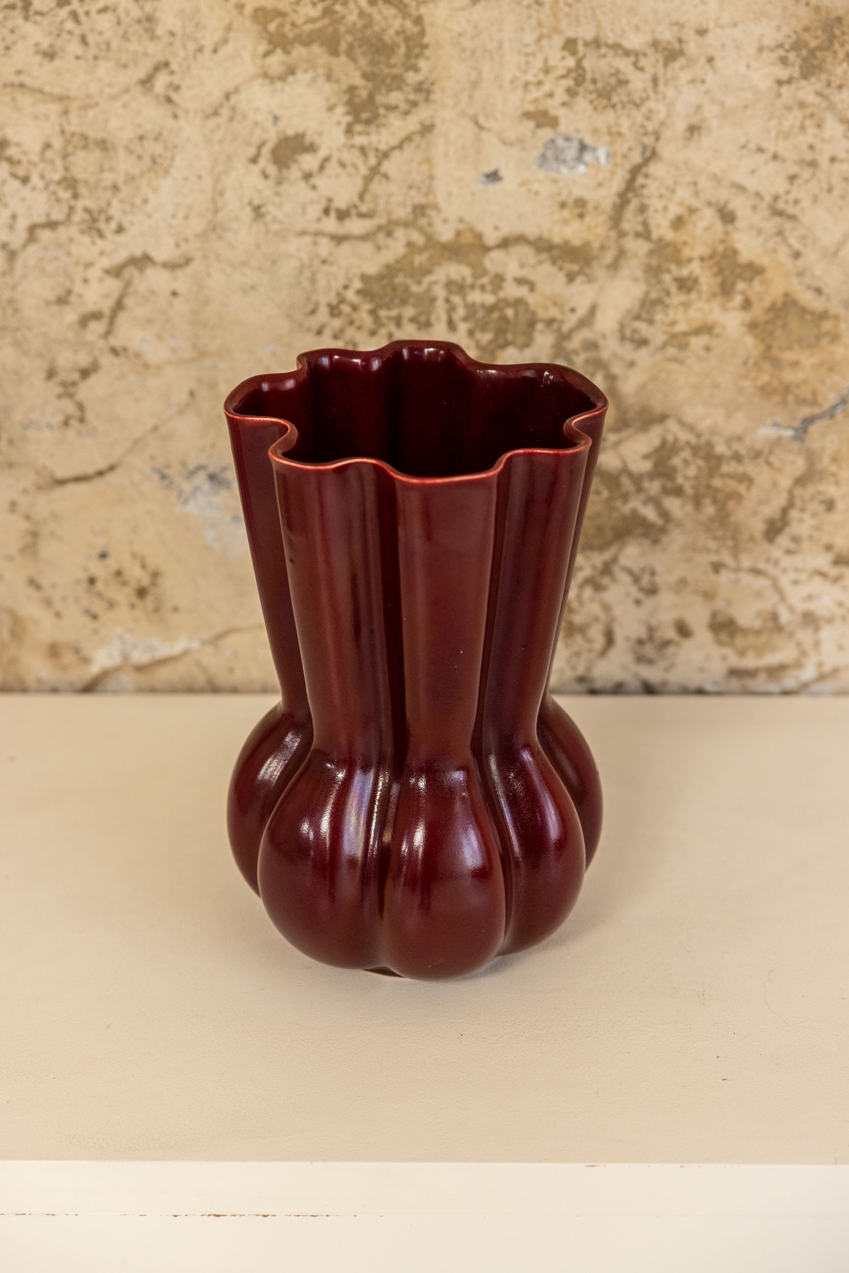 Ceramica smaltata color bordeaux con elegante collo ondulato.